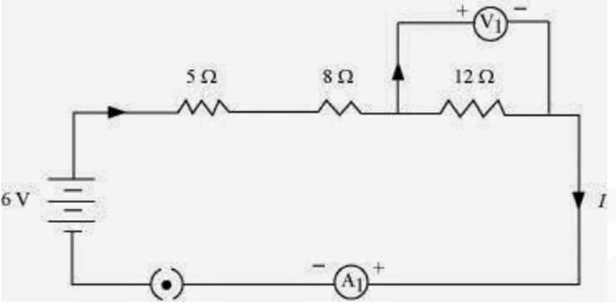 13. ಪ್ರಶ್ನೆಯೊಂದರಲ್ಲಿನ ರೇಖಾ ಚಿತ್ರವನ್ನು ಮತ್ತೊಮ್ಮೆ ರಚಿಸಿರಿ.ರೋಧಕದಲ್ಲಿ ಪ್ರವಹಿಸುತ್ತಿರುವ ವಿದ್ಯುತ್ ಪ್ರವಾಹವನ್ನು ಅಳೆಯುವ ಅಮೀಟರನ್ನು ಮತ್ತು 12 ೧ ನ ರೋಧಕದ ತುದಿಗಳ ನಡುವಿನ ವಿಭವಾಂತರವನ್ನು ಅಳೆಯಲು ವೋಲ್ಟಮೀಟರನ್ನು ಜೋಡಿಸಿರಿ.ಅಮೀಟರ್ ಮತ್ತು ವೋಲ್ಟಮಿಟರ್ ನಲ್ಲಿಯ ಸೂಚ್ಯಂಕವು ಎಷ್ಟಿರಬಹುದು ?