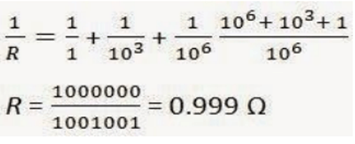 ಆದ್ದರಿಂದ ಮಂಡಲದ ಸಮಾನ ರೋಧ = 1೧